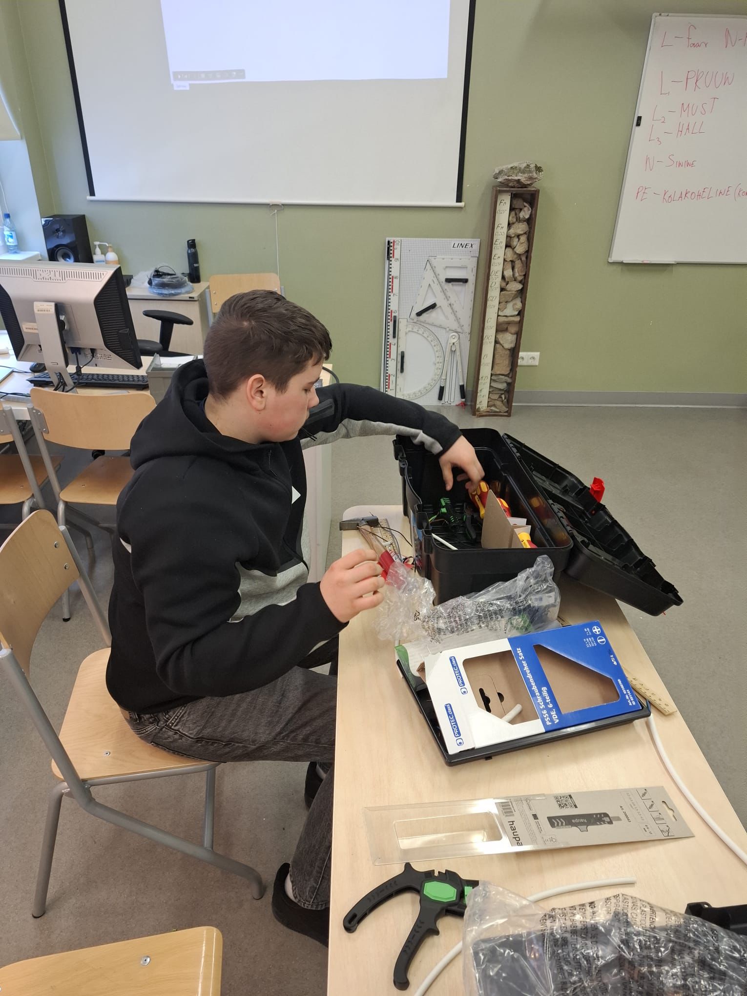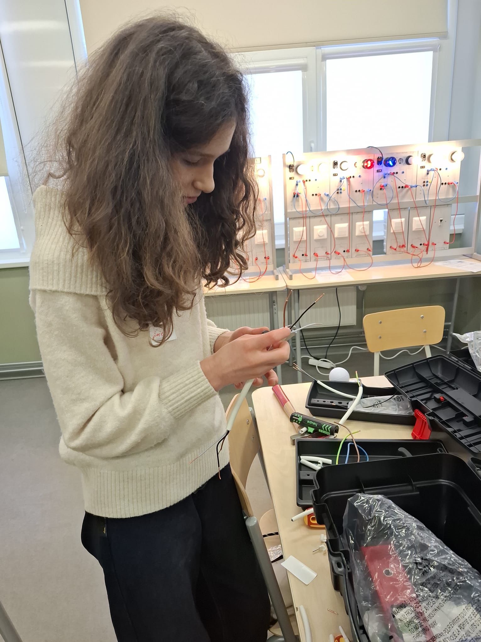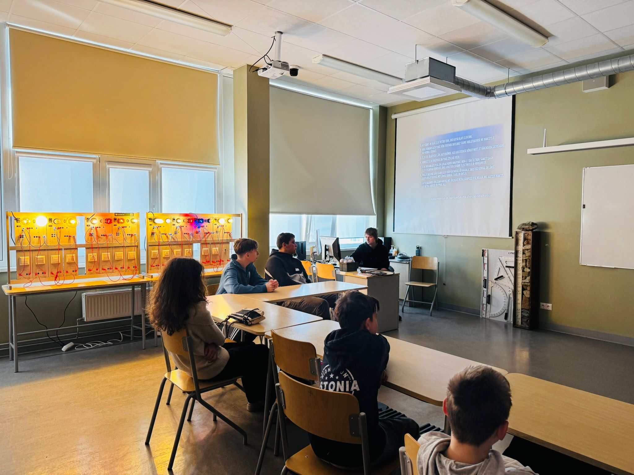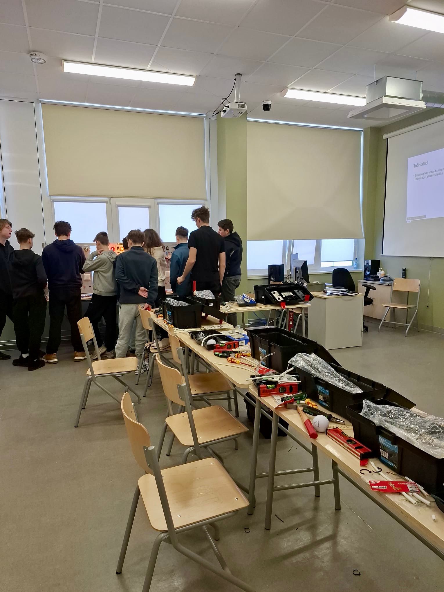 Päeva jooksul tutvuti elektriohutuse põhitõdedega, töövahenditega ning harjutati juhendajate toel õigete töövõtete kasutamist.