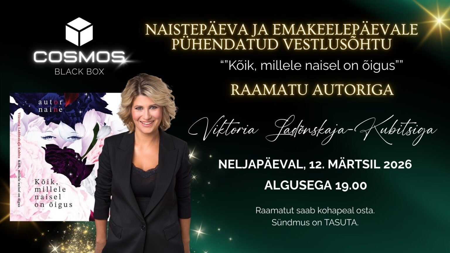 Õhtu külaliseks on raamatu „Kõik, millele naisel on õigus“ autor Viktoria Ladõnskaja-Kubits, kellega vesteldakse raamatu teemadel ning arutletakse naise rolli, õiguste ja ühiskondlike ootuste üle. See on sisukas kohtumine, kus saab kaasa mõelda ja arutelus osaleda.