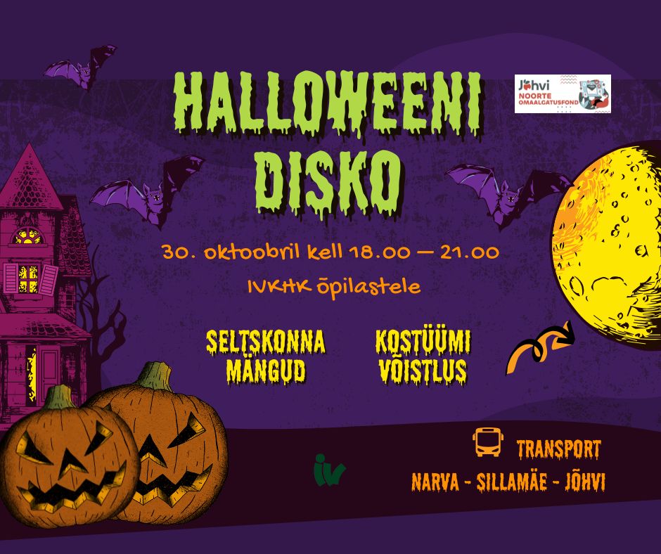30. oktoobril kell 18.00–21.00 toimub Halloweeni disko Jõhvi õppekohas.