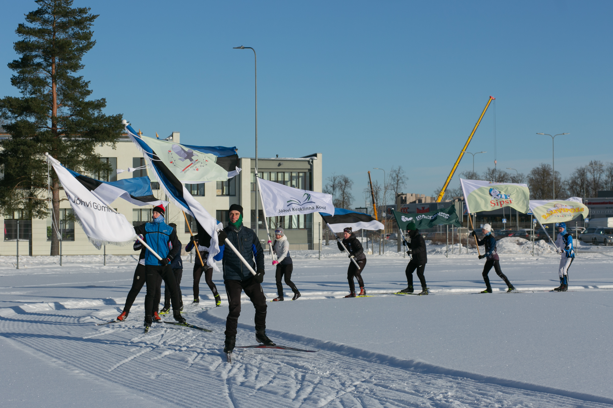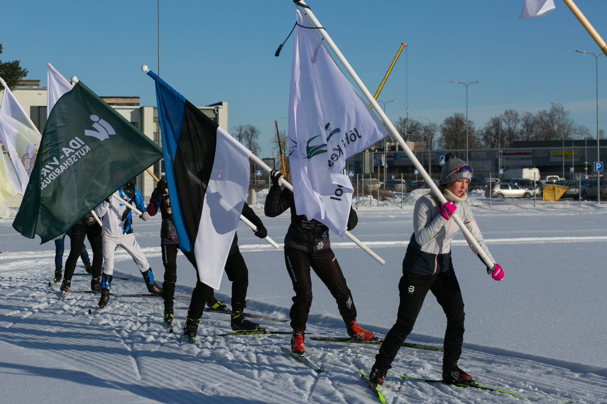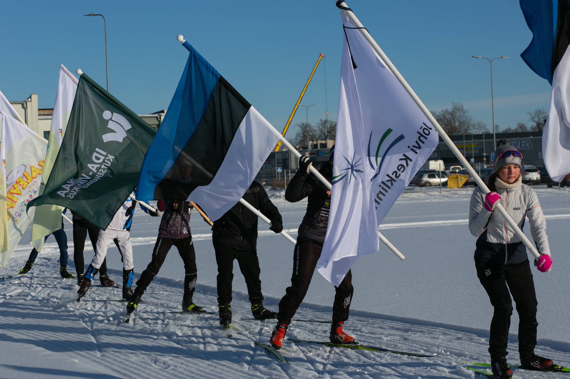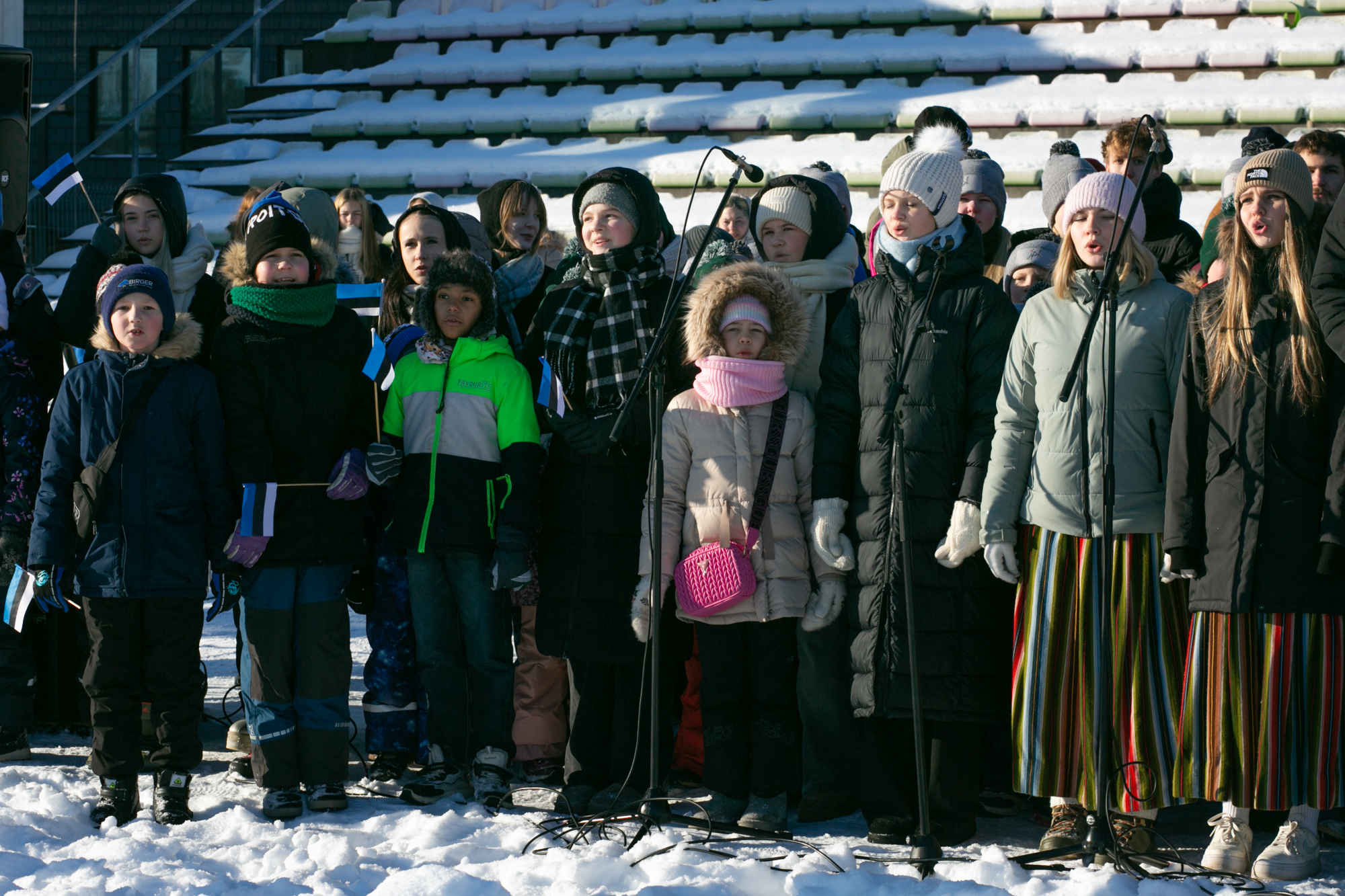 Eesti lipu ning koolide ja lasteaedade lipud tõid staadionile Jõhvi parimad suusatajad ning päeva üheks võimsamaks hetkeks kujunes suure sini-must-valge lipu ühiselt lahtirullimine.