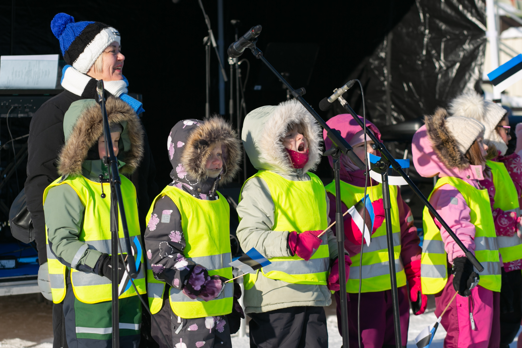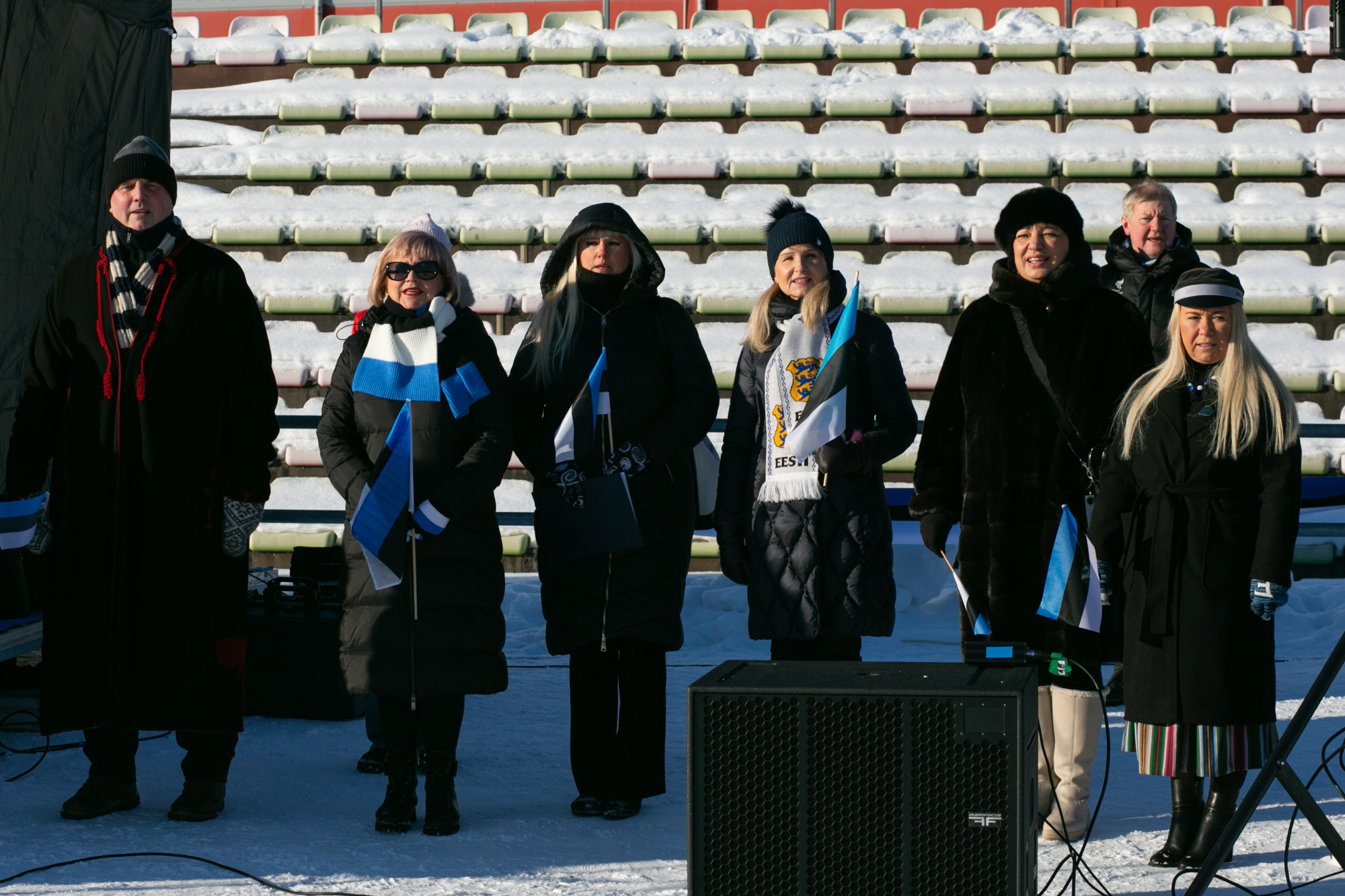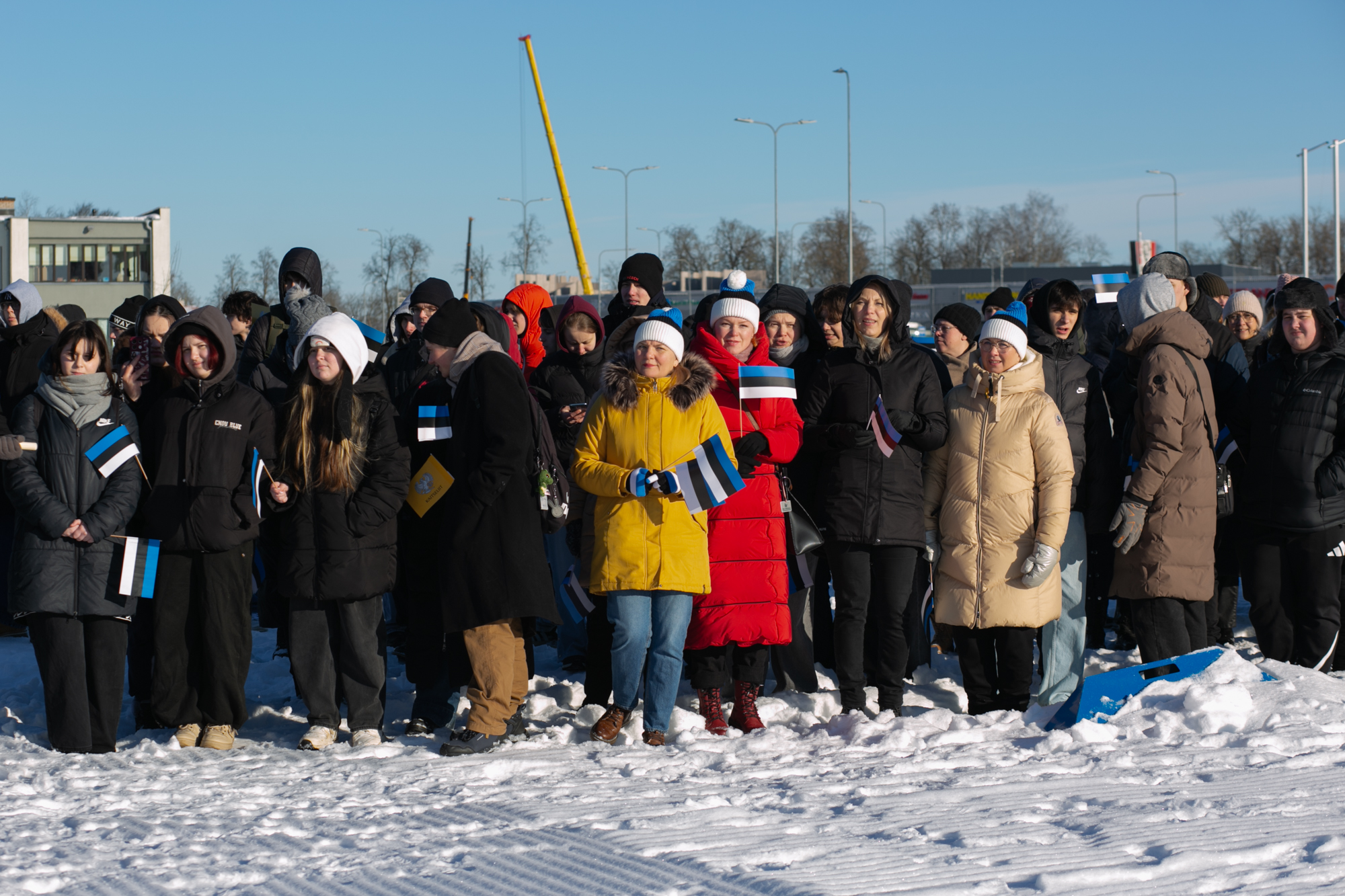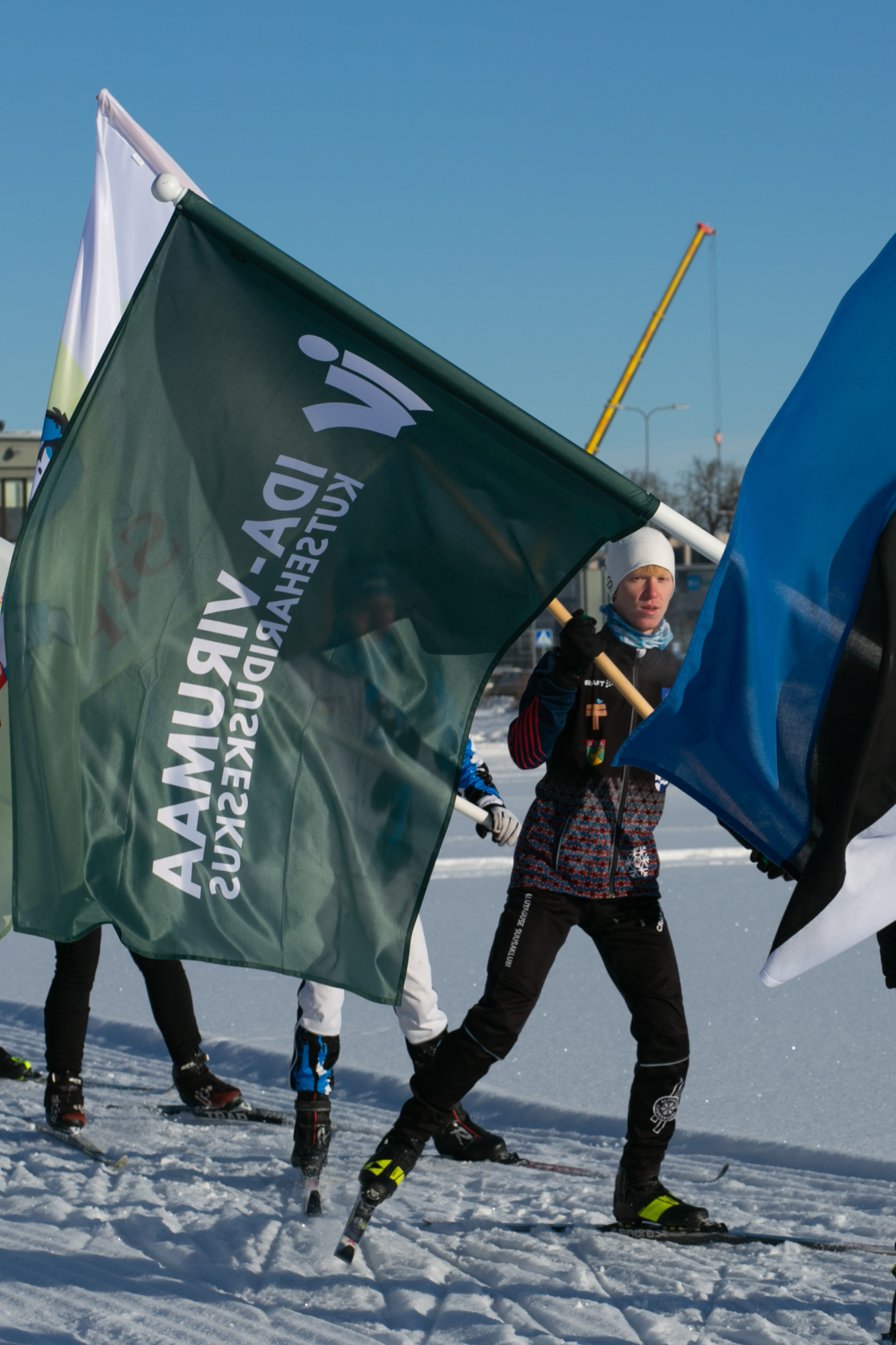 Eesti lipu ning koolide ja lasteaedade lipud tõid staadionile Jõhvi parimad suusatajad ning päeva üheks võimsamaks hetkeks kujunes suure sini-must-valge lipu ühiselt lahtirullimine.