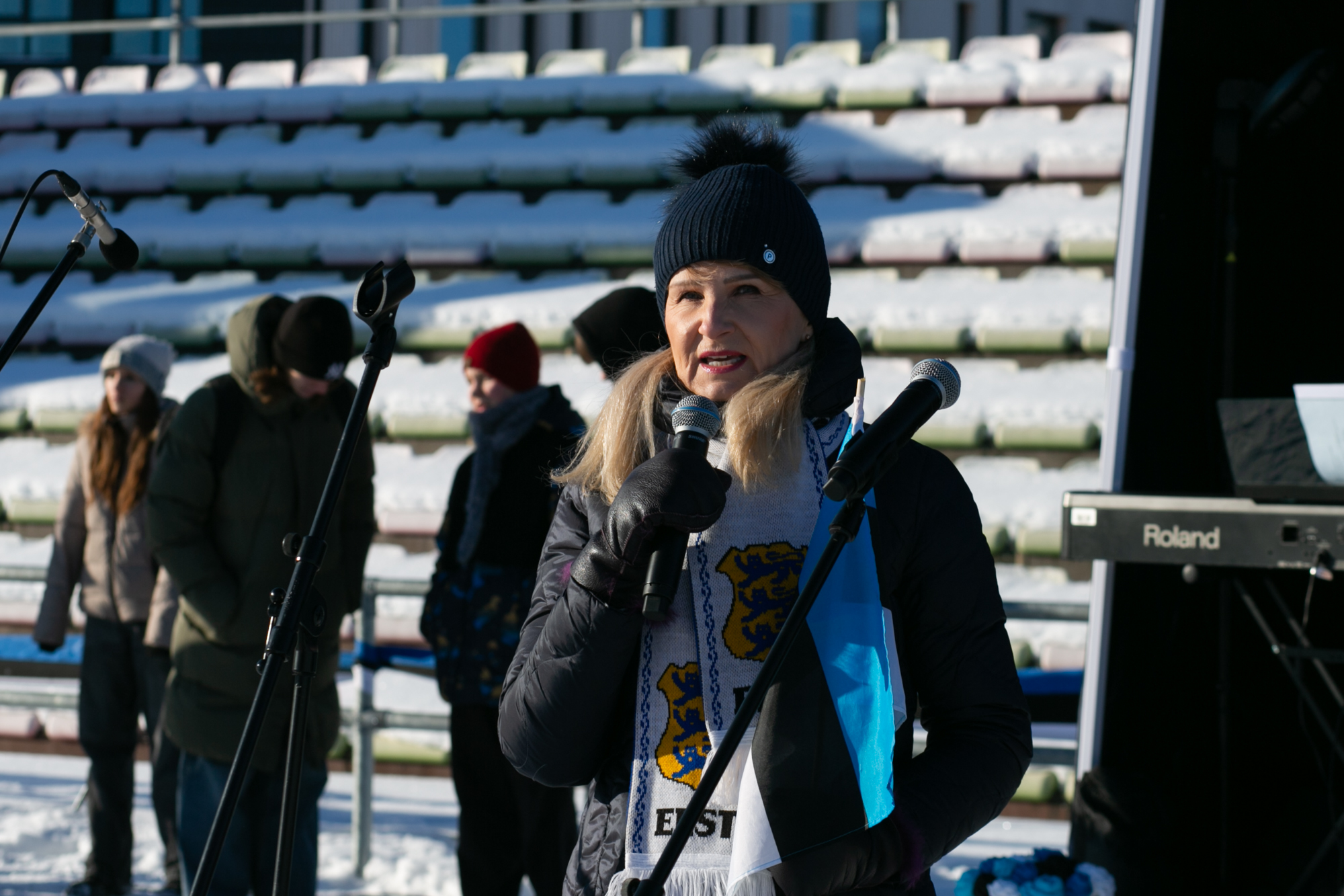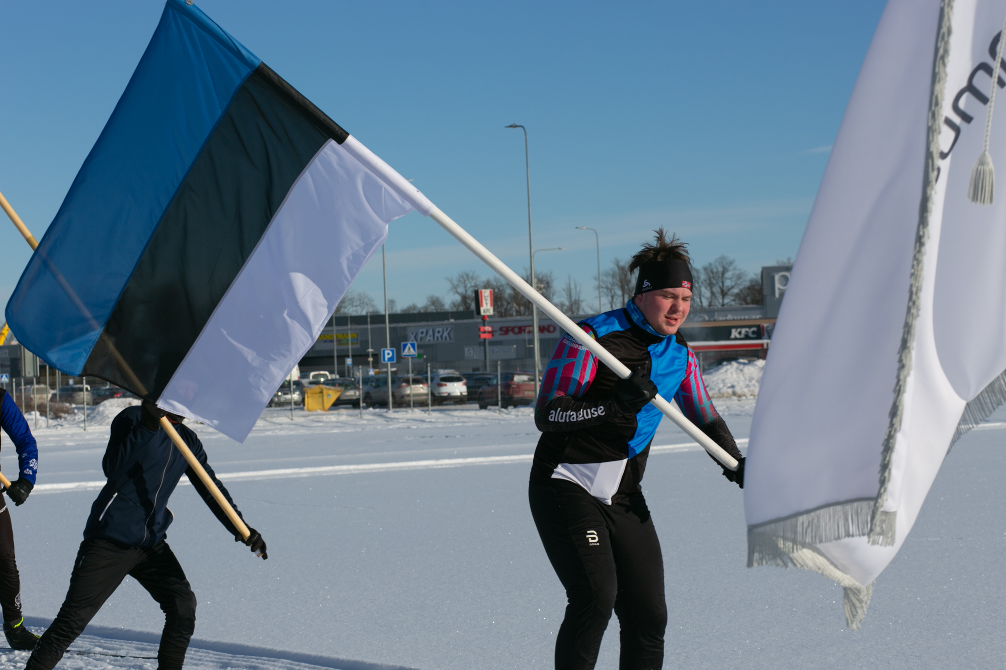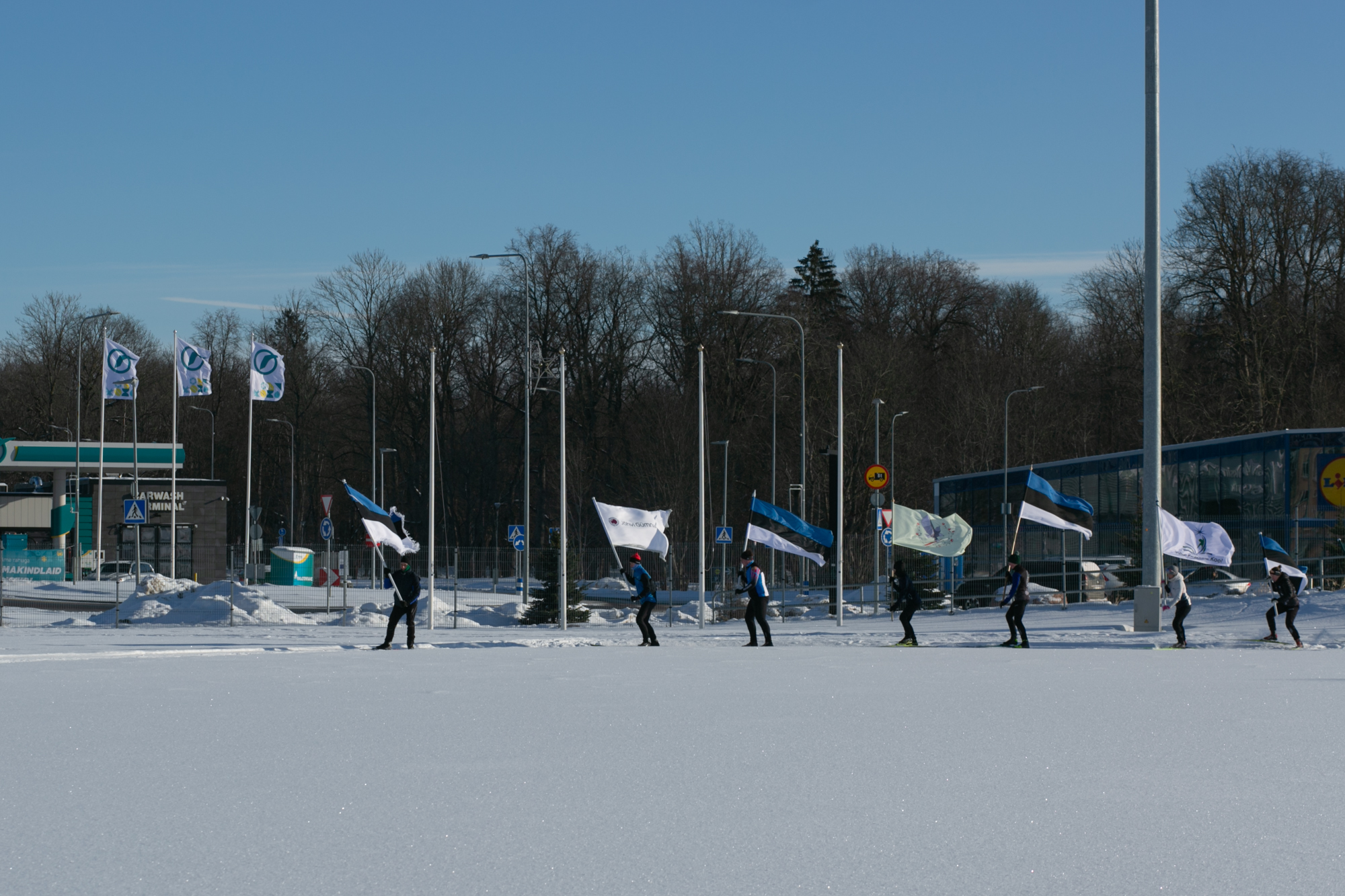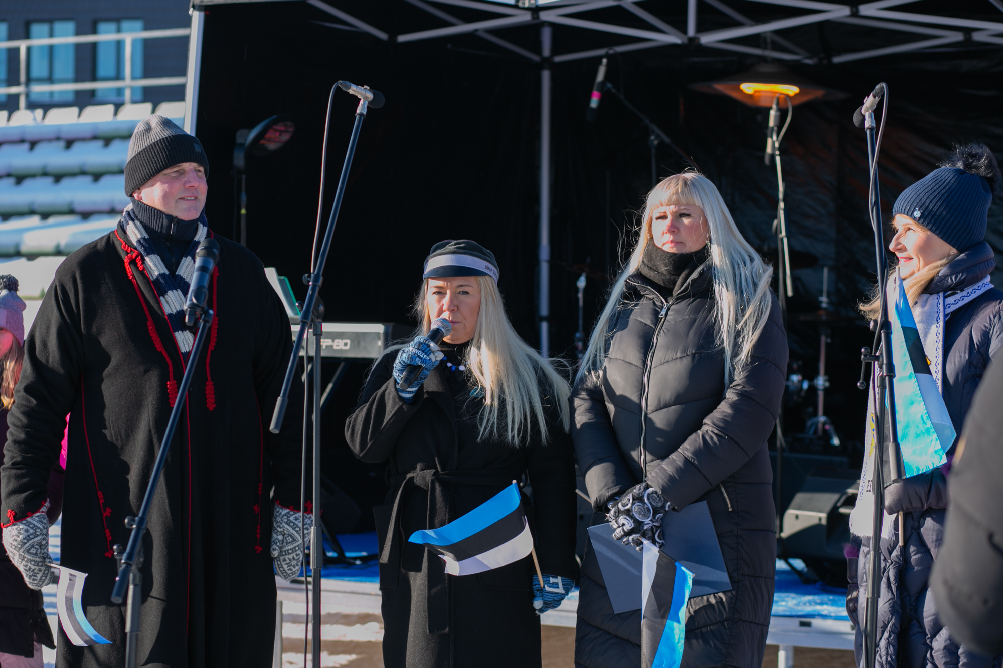Eesti lipu ning koolide ja lasteaedade lipud tõid staadionile Jõhvi parimad suusatajad ning päeva üheks võimsamaks hetkeks kujunes suure sini-must-valge lipu ühiselt lahtirullimine.