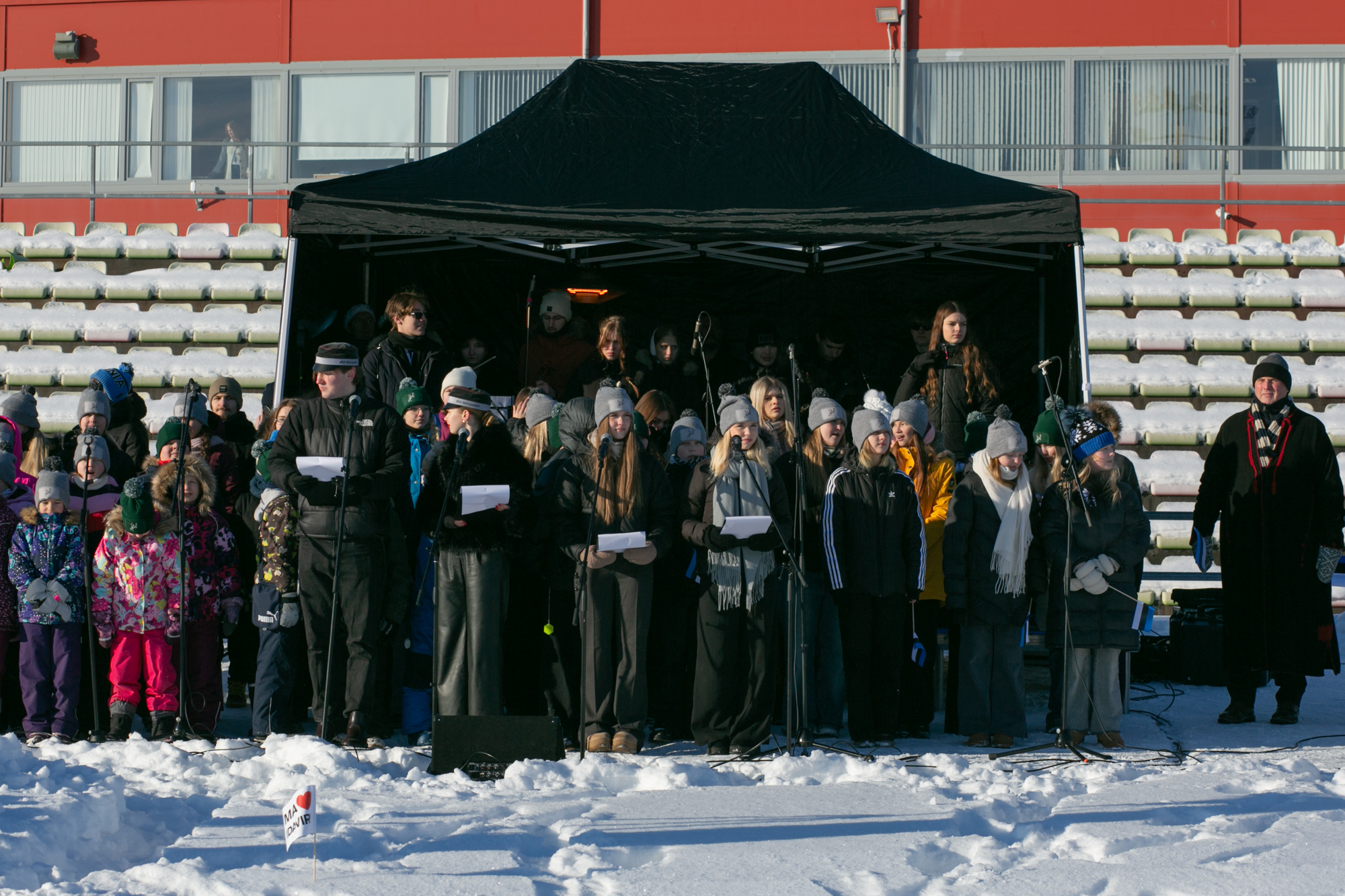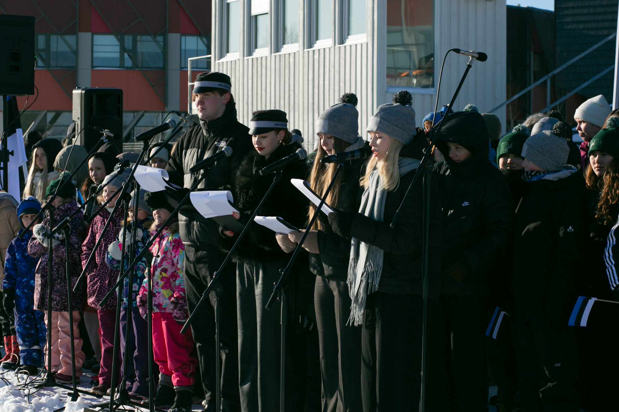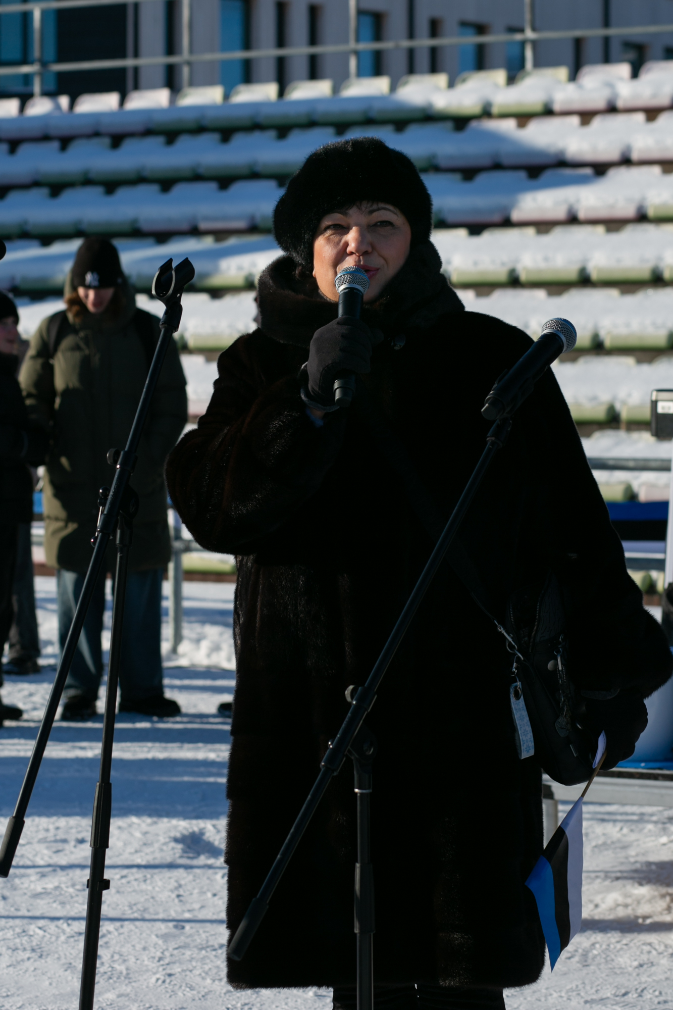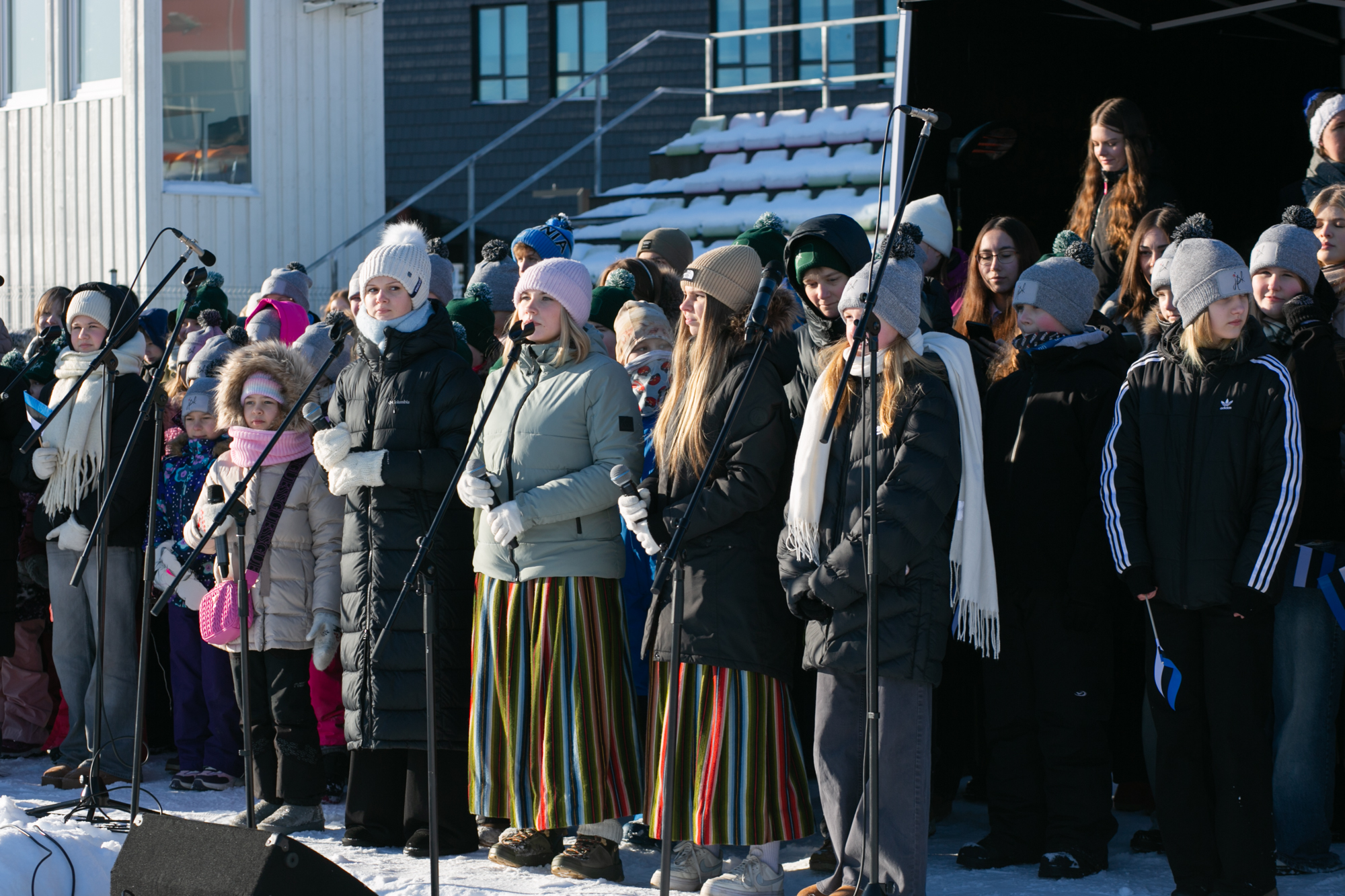 Eesti lipu ning koolide ja lasteaedade lipud tõid staadionile Jõhvi parimad suusatajad ning päeva üheks võimsamaks hetkeks kujunes suure sini-must-valge lipu ühiselt lahtirullimine.