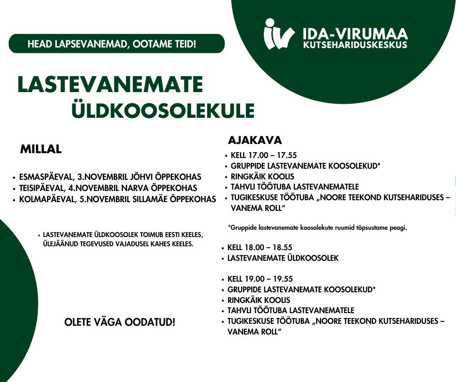 Esmaspäev, 3. november – Jõhvi õppekoht