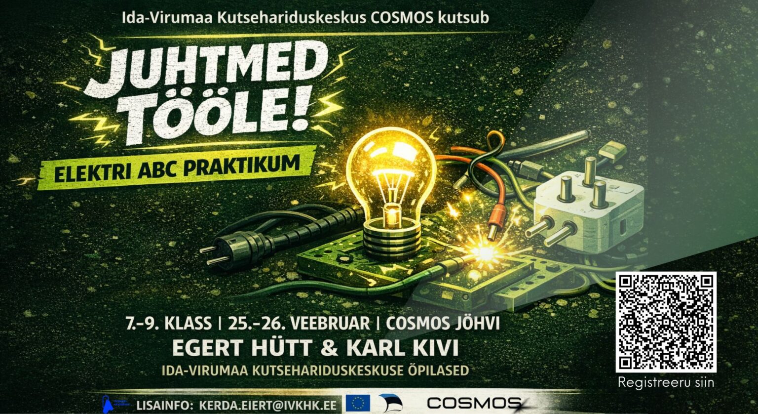 25.–26. veebruaril kell 12.00–16.00 toimub meie koolis elektri praktikum, mis on suunatud 7.–9. klassi õpilastele. Tegemist on koolivaheajal pakutava praktilise ja kaasahaarava õppimisvõimalusega noortele, keda huvitab tehnika ja elekter.